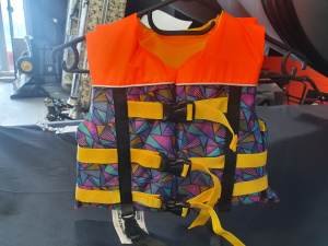 Спасательный жилет для юных любителей отдыха на воде выполнен в яркой цветовой гамме из прочных полиэстровых тканей с PU пропиткой.